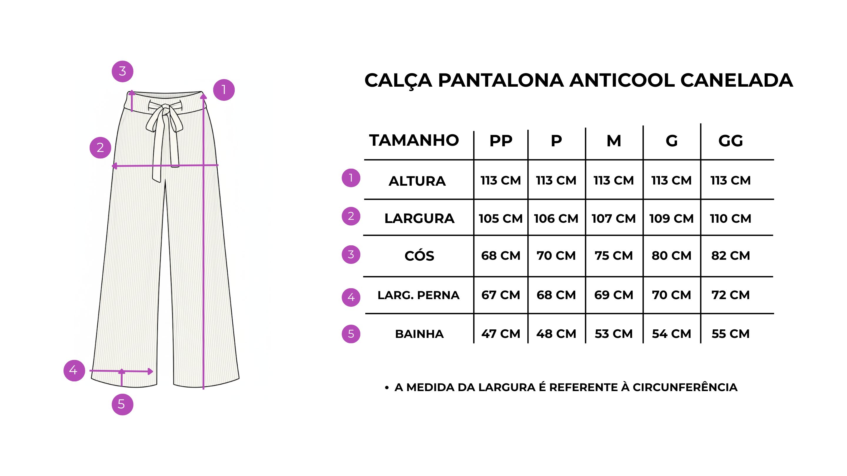 Experimente o equilíbrio perfeito entre estilo e conforto com a Calça Pantalona Anticool Canelada. Esta peça sofisticada é confeccionada com um tecido fluido composto por 92% elastano e 8% viscose, oferecendo um caimento leve e elegante que se move com você.