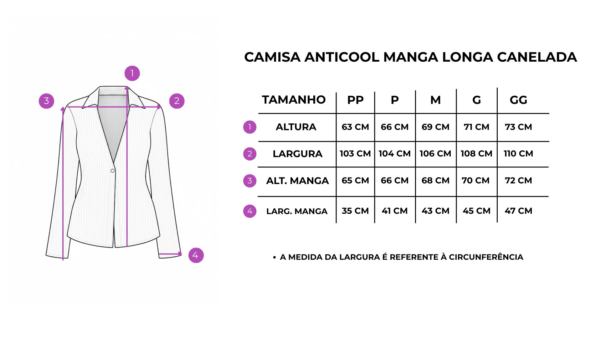 Eleve o seu estilo com a Camisa Anticool Manga Longa Canelada, a escolha perfeita para quem busca conforto e elegância em uma só peça. Confeccionada com um tecido inovador composto por 92% elastano e 8% viscose, oferece um caimento impecável e um toque suave na pele. A composição garante flexibilidade e um ajuste leve, enquanto o design canelado traz um charme discreto e moderno.