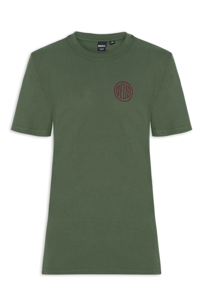 Camiseta box fit básica, com logo personalizado da marca estampado no peito, produzida 100% em algodão, com algodão orgânico e processo de lavanderia especial.