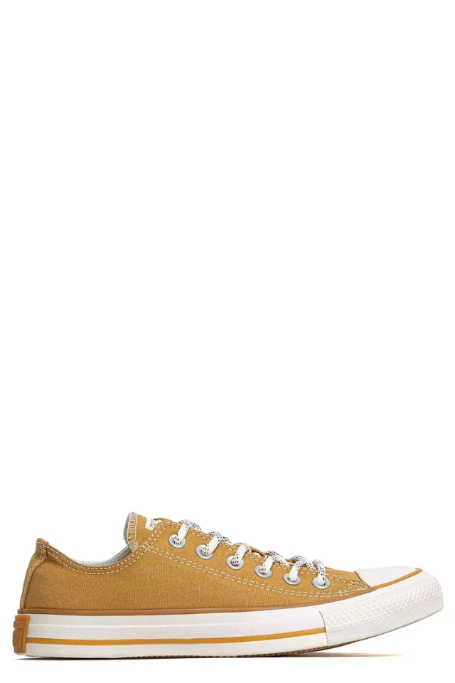Descubra o Clássico Reinventado, Chuck Taylor All Star, um Ícone da Converse. Este modelo de cano baixo em tecido lona amarelo queimado exibe o emblemático logo da marca na língua. Com fechamento em cadarço e solado de borracha durável, é a escolha perfeita para um estilo autêntico e conforto duradouro
